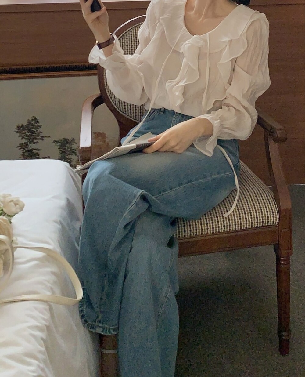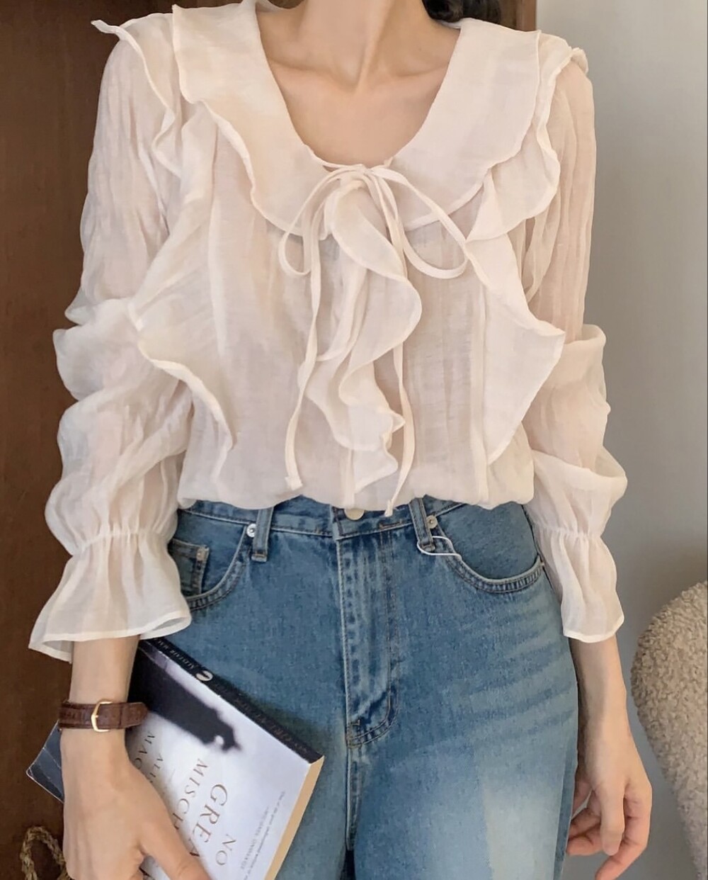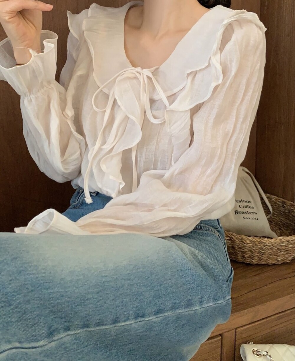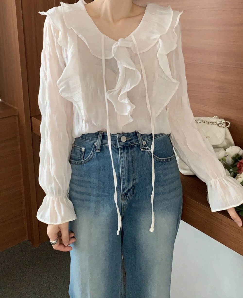 셔링 주름 프릴 끈 리본 여리여리 봄 블라우스 (데이트룩 하객룩 여행코디)