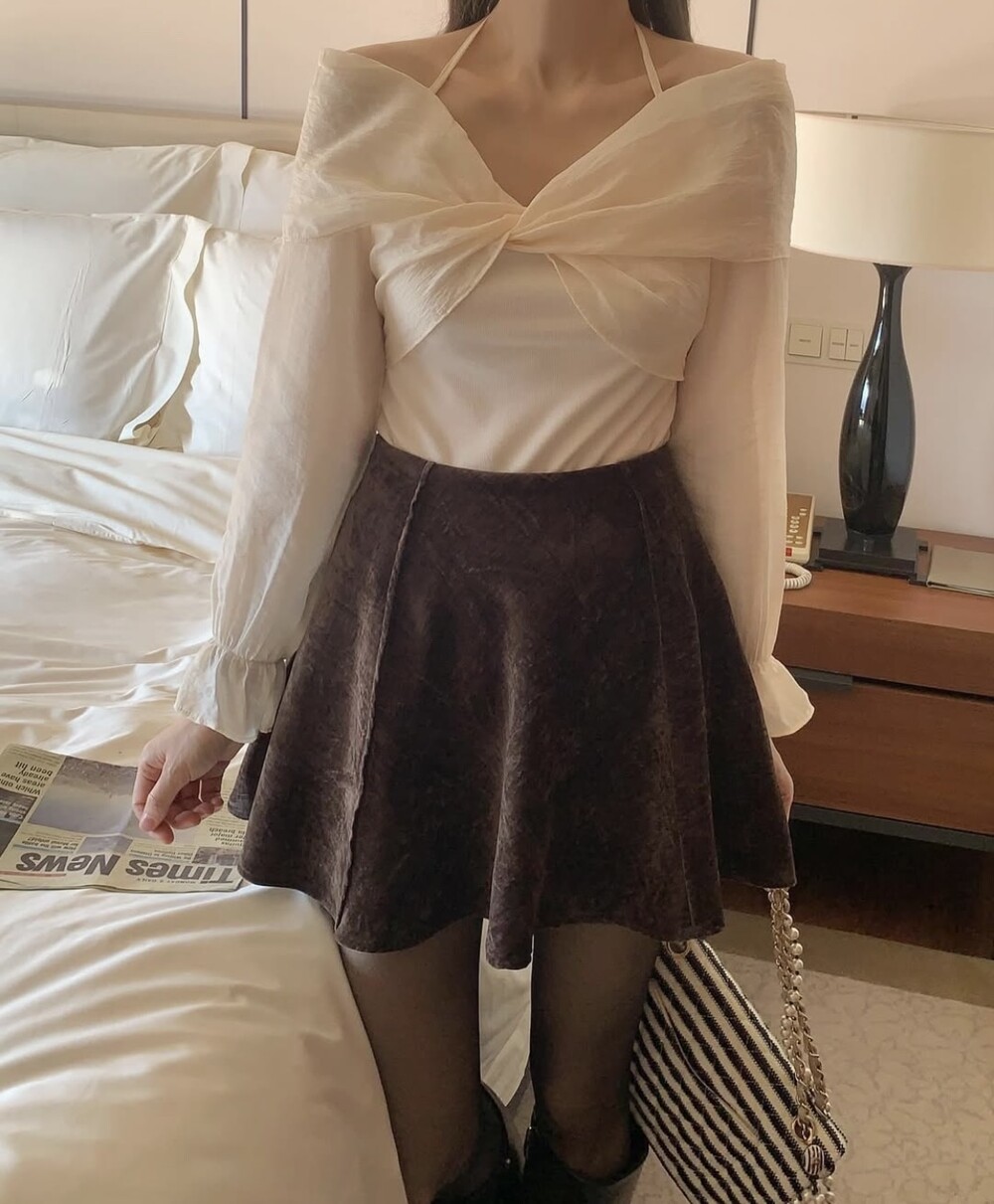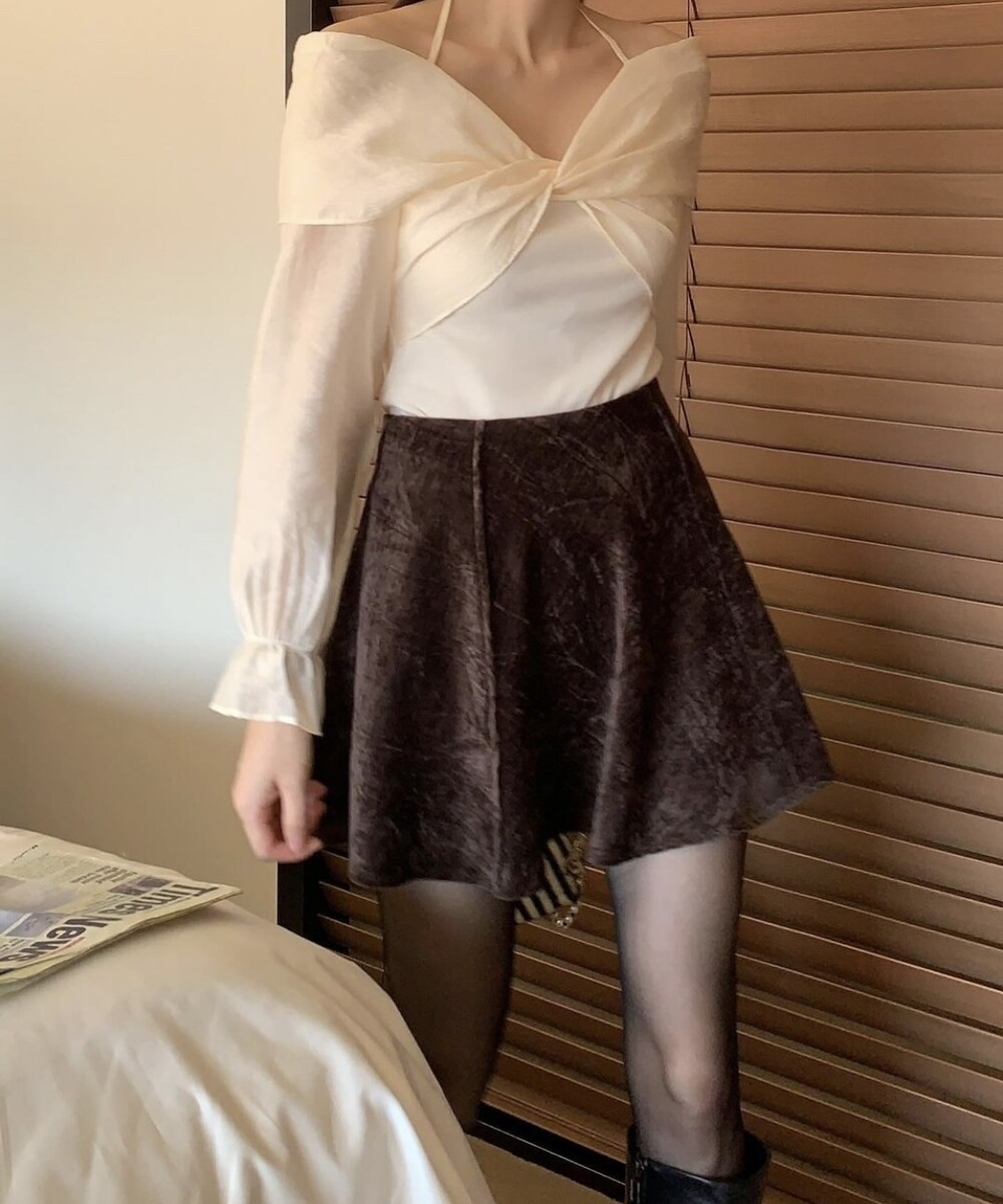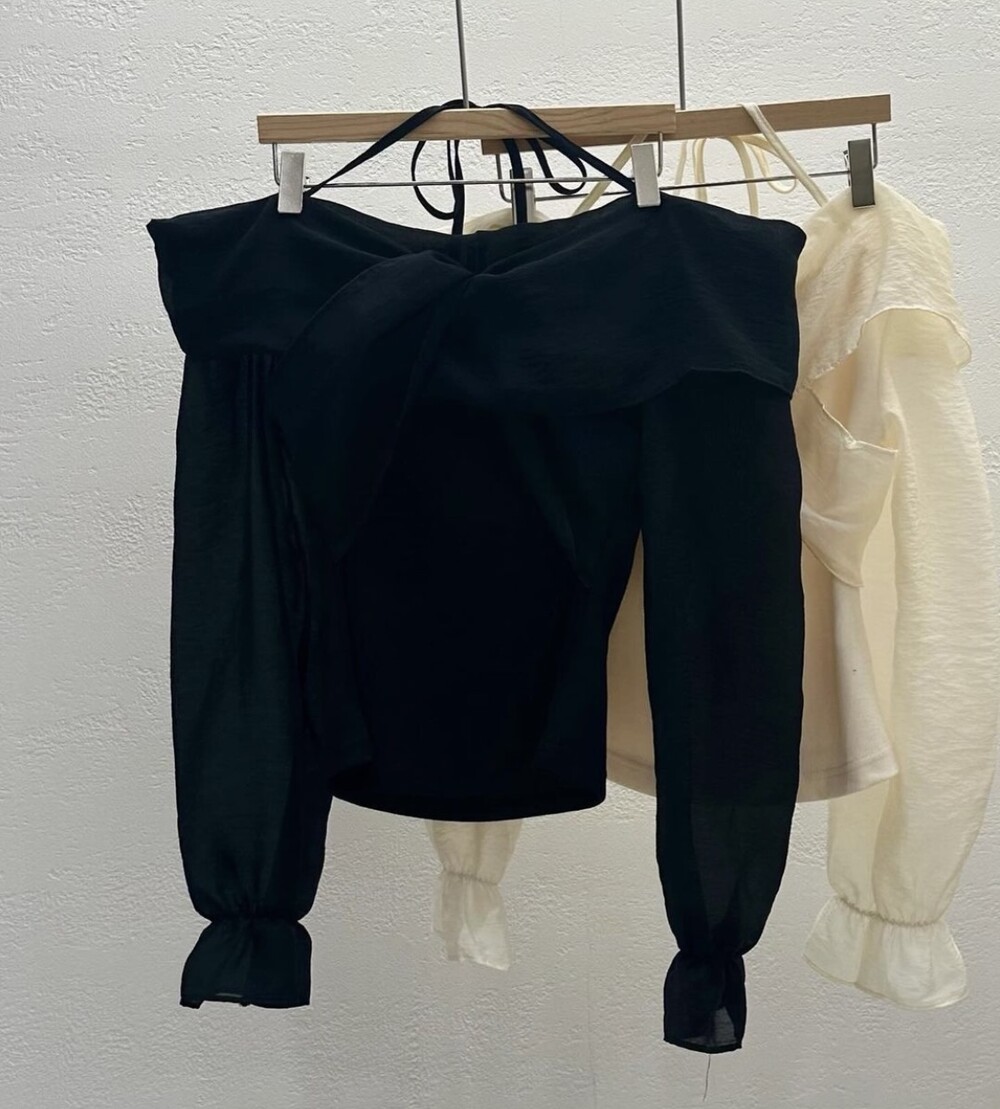 리본 셔링 끈 오프숄더 페미닌 연말 블라우스 (데이트룩 파티룩 럭셔리룩)