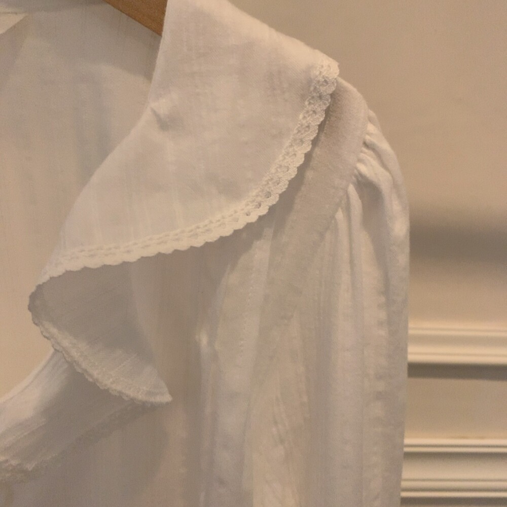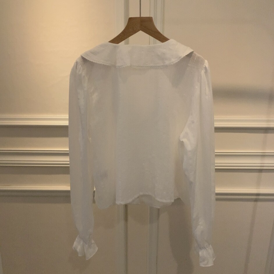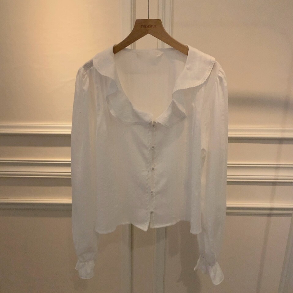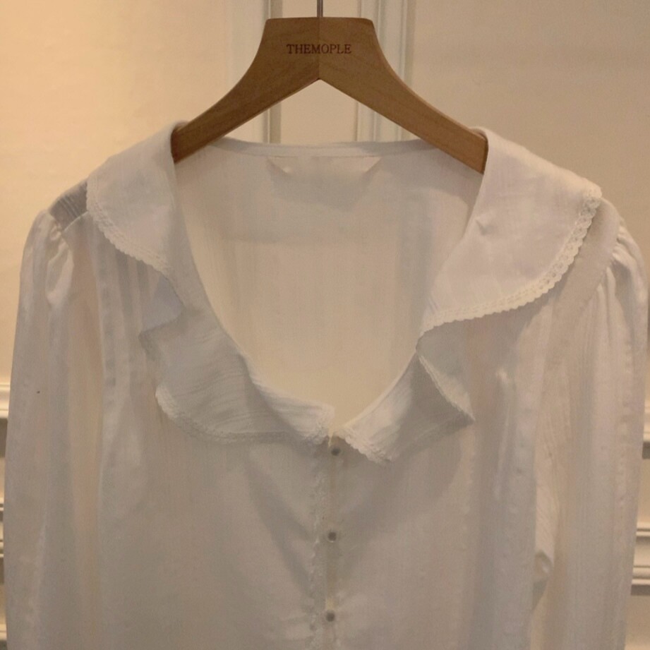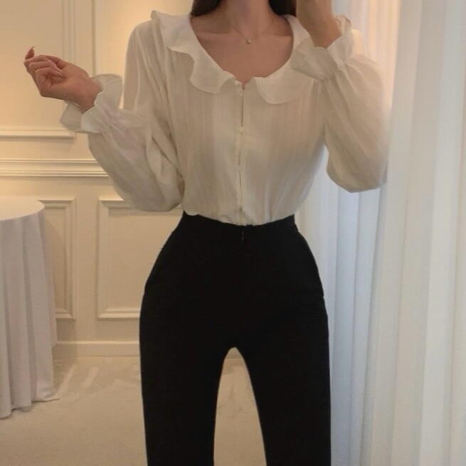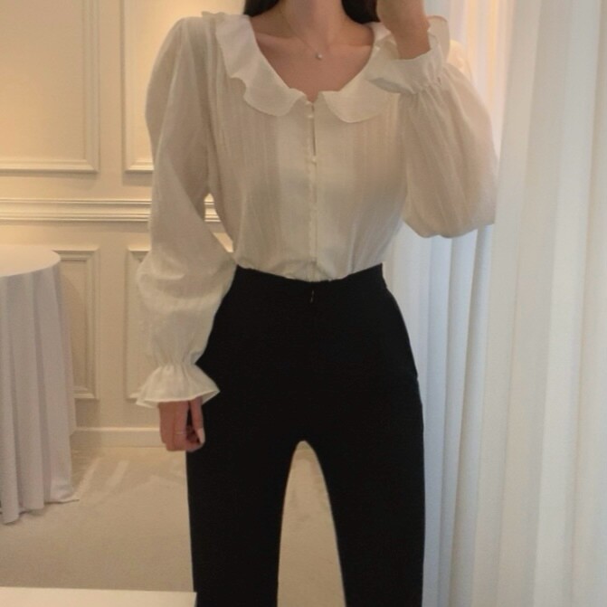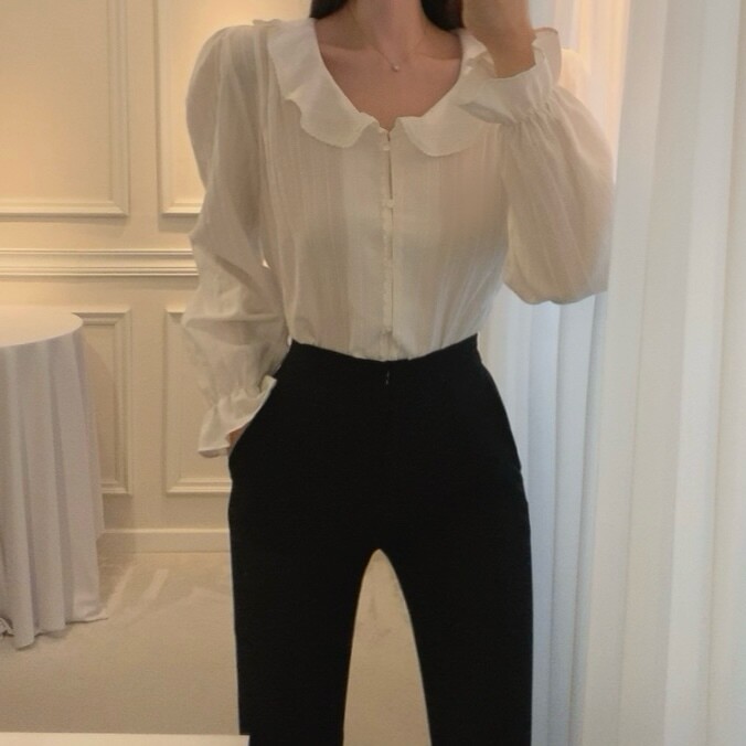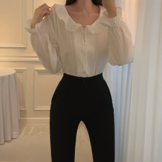 기모 원단 프릴 카라 레이스 퍼프 소매 단추 블라우스