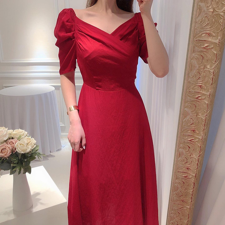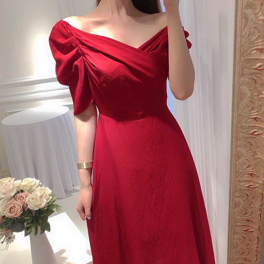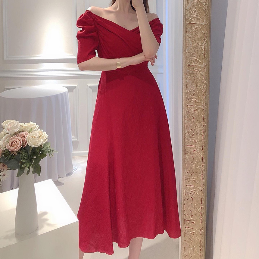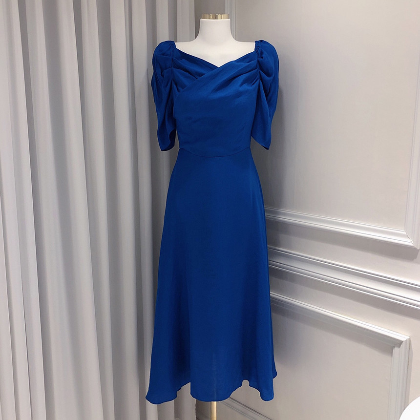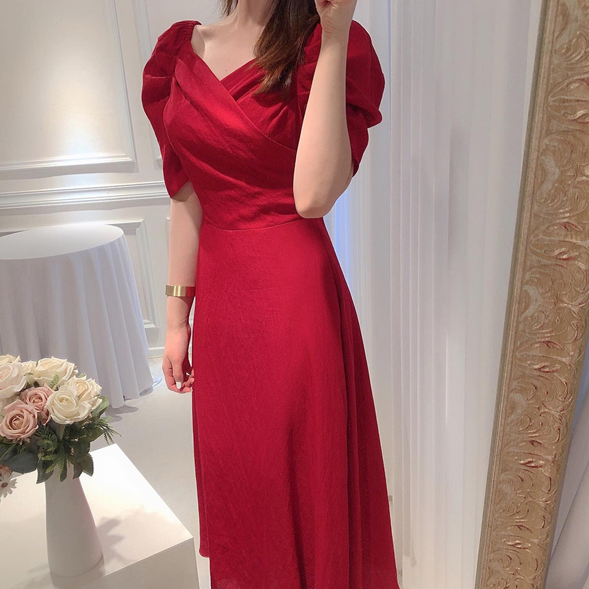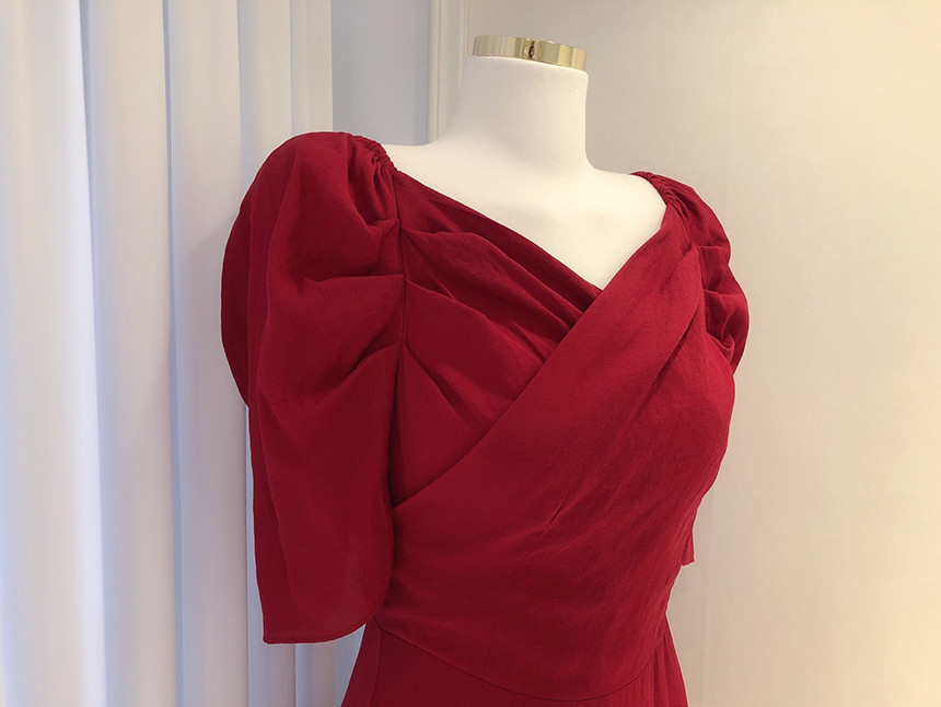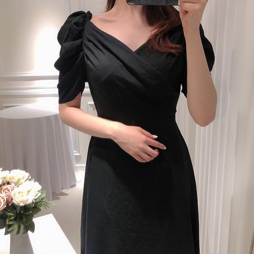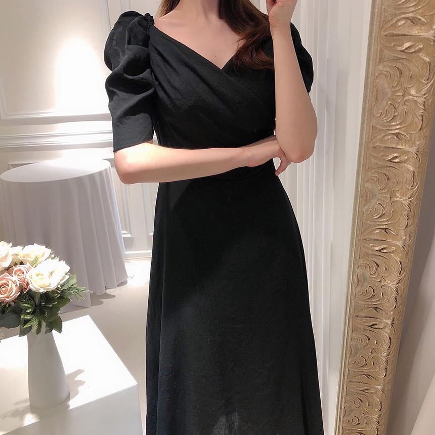 [원가이하 세일*당일출고] 어깨밴딩 퍼프 소매 에이라인 플레어 롱원피스 (하객룩 데이트룩 럭셔리룩)
