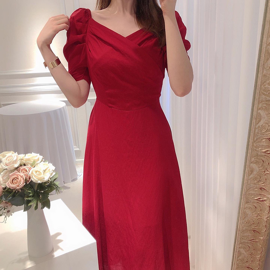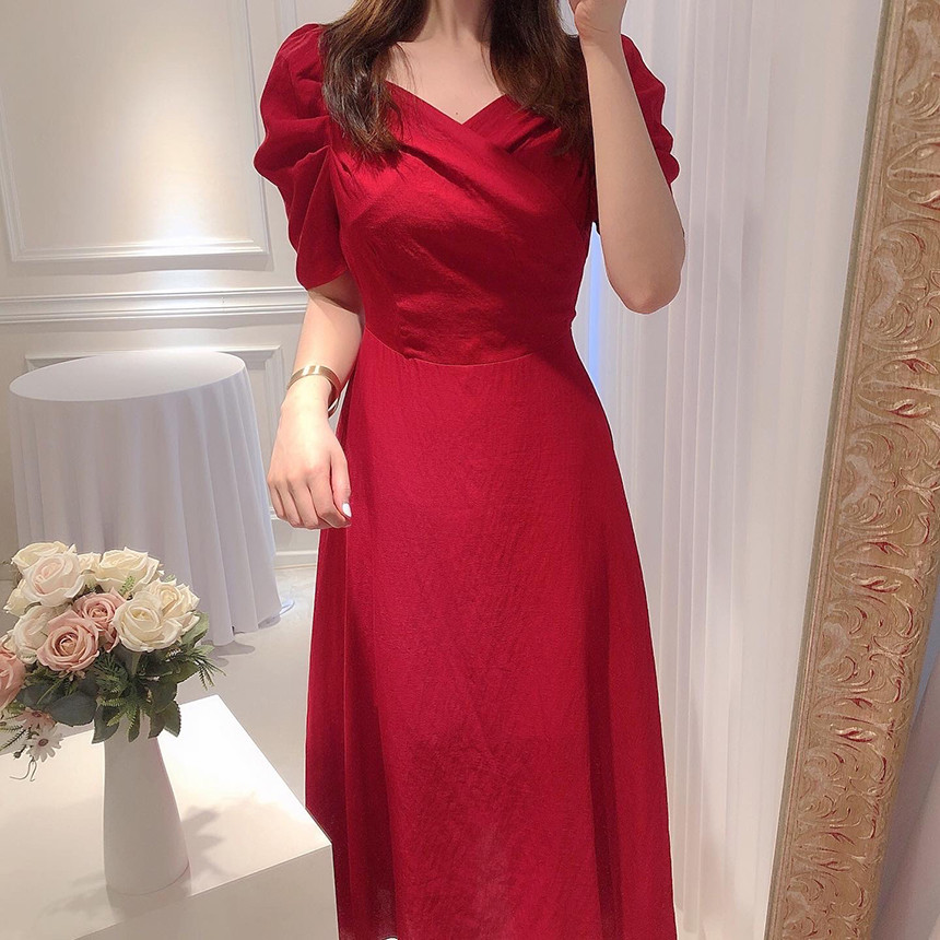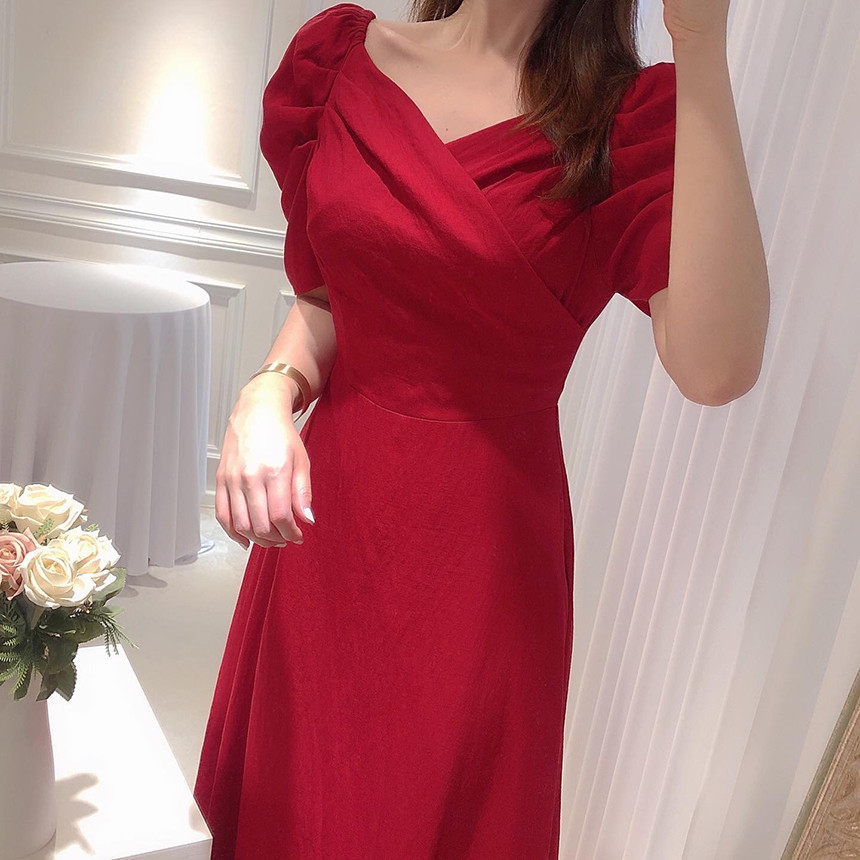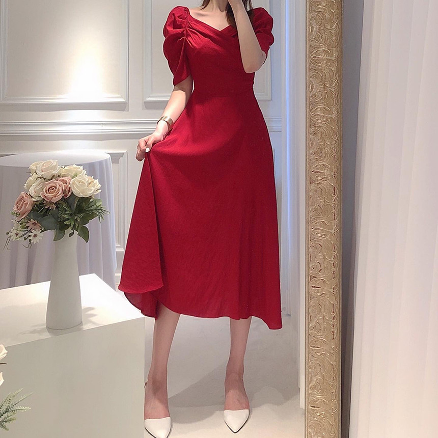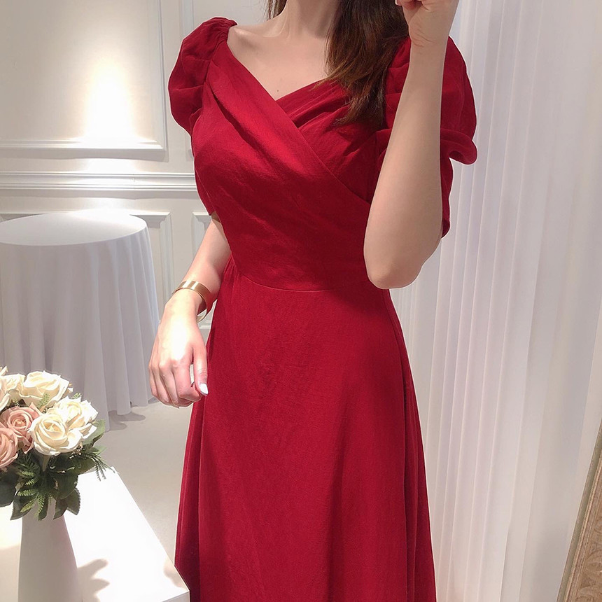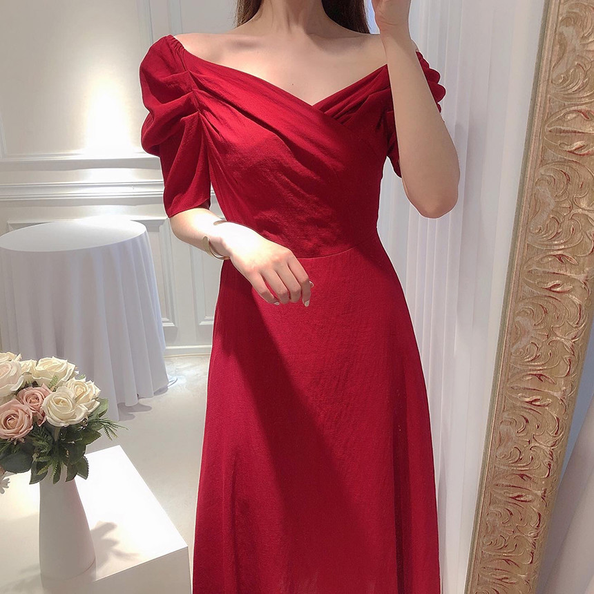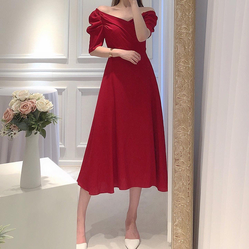 [원가이하 세일*당일출고] 어깨밴딩 퍼프 소매 에이라인 플레어 롱원피스 (하객룩 데이트룩 럭셔리룩)