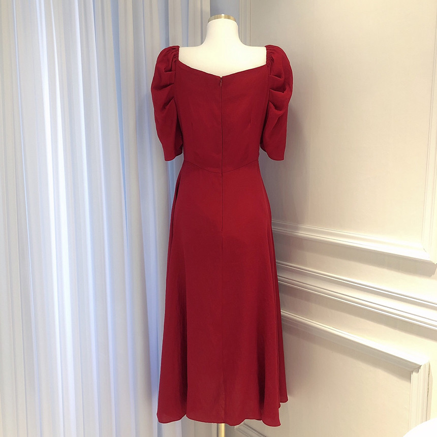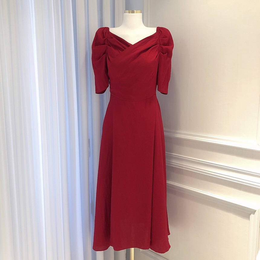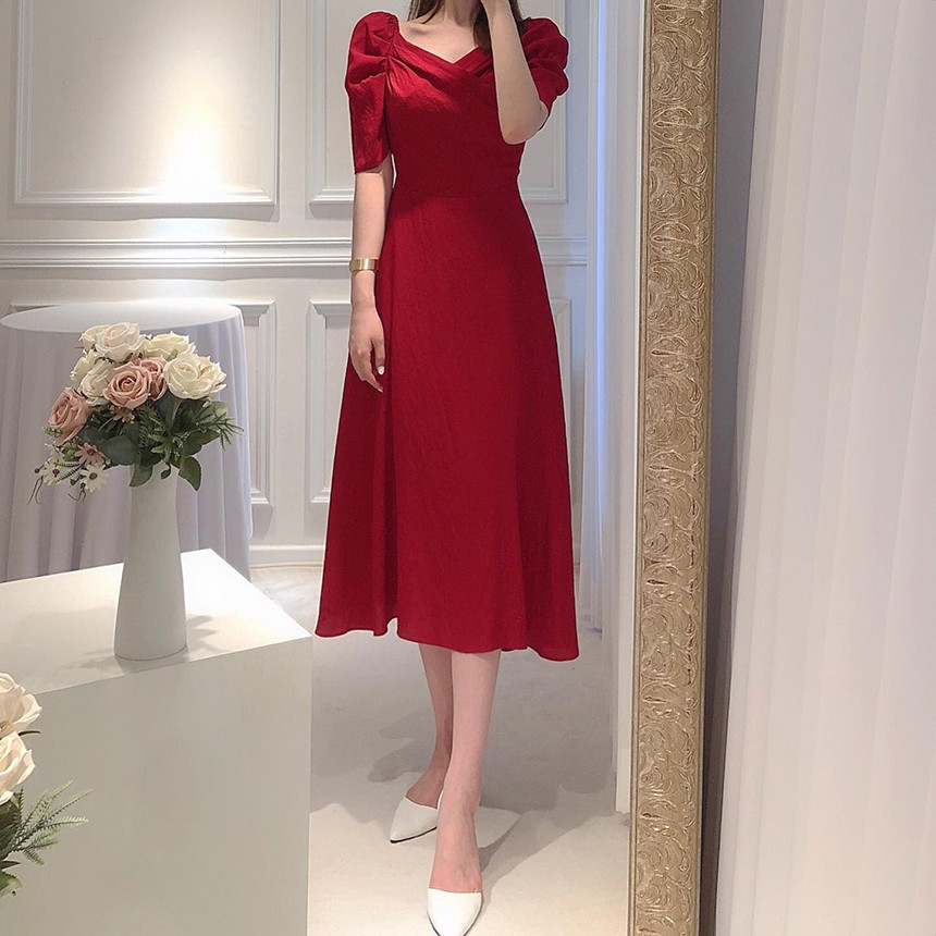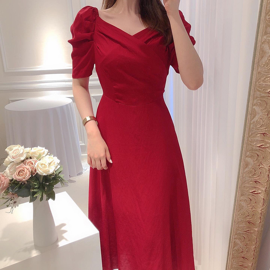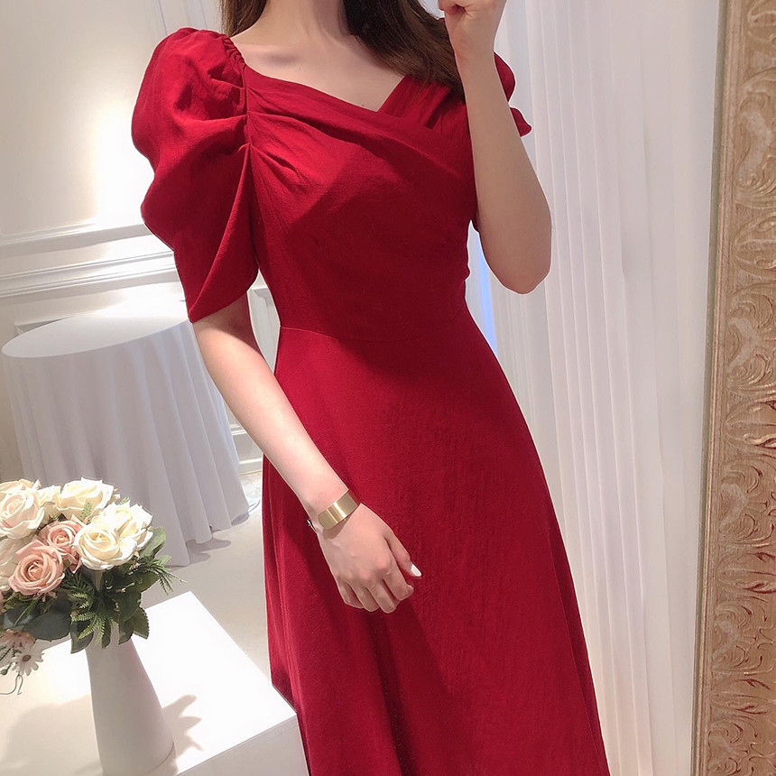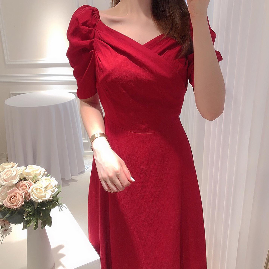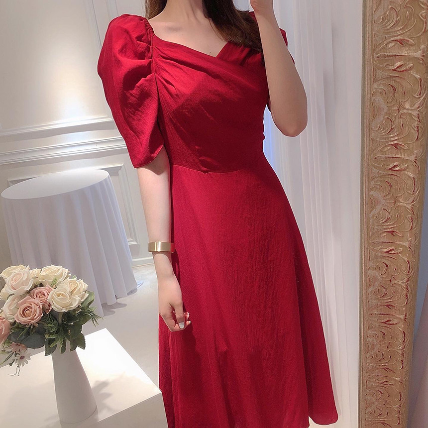 [원가이하 세일*당일출고] 어깨밴딩 퍼프 소매 에이라인 플레어 롱원피스 (하객룩 데이트룩 럭셔리룩)