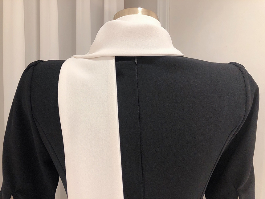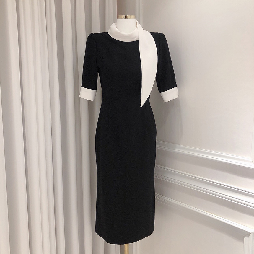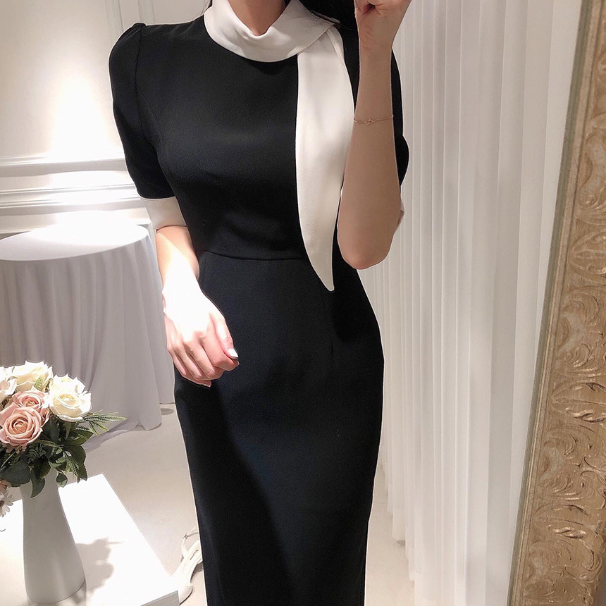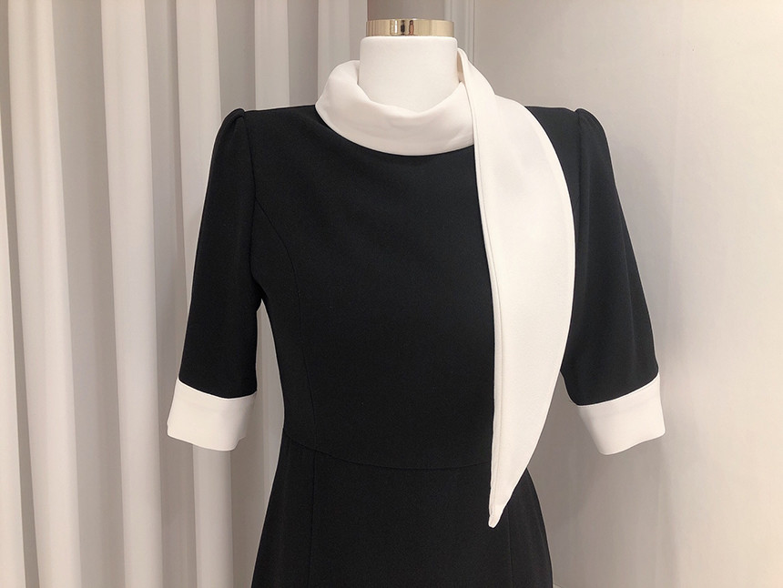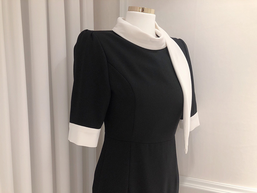 [원가이하 세일*당일출고] 스카프 리본 배색 원피스 (하객룩 돌잔치룩 상견례룩 정장원피스)