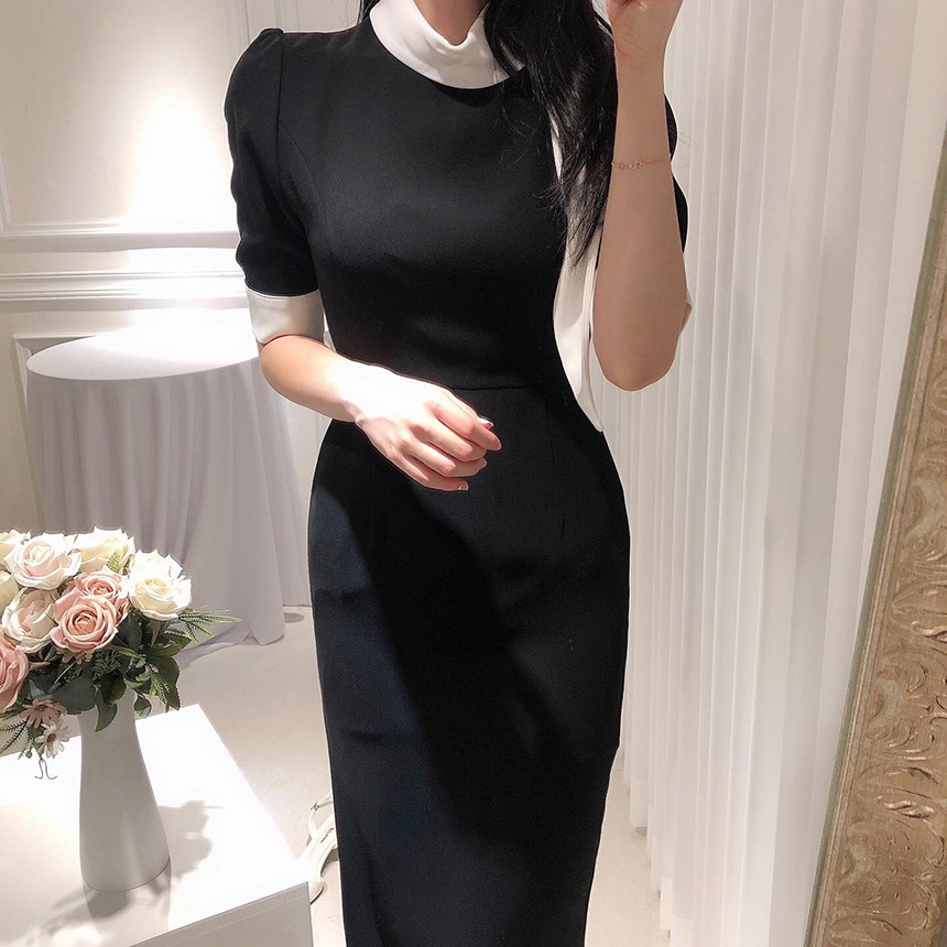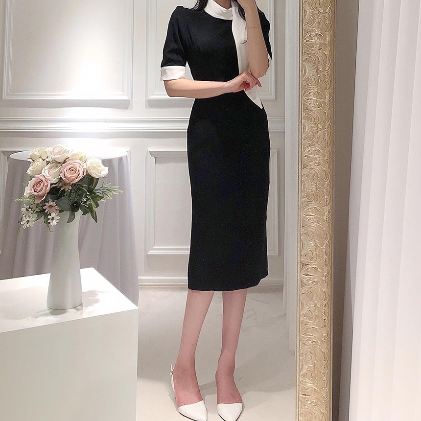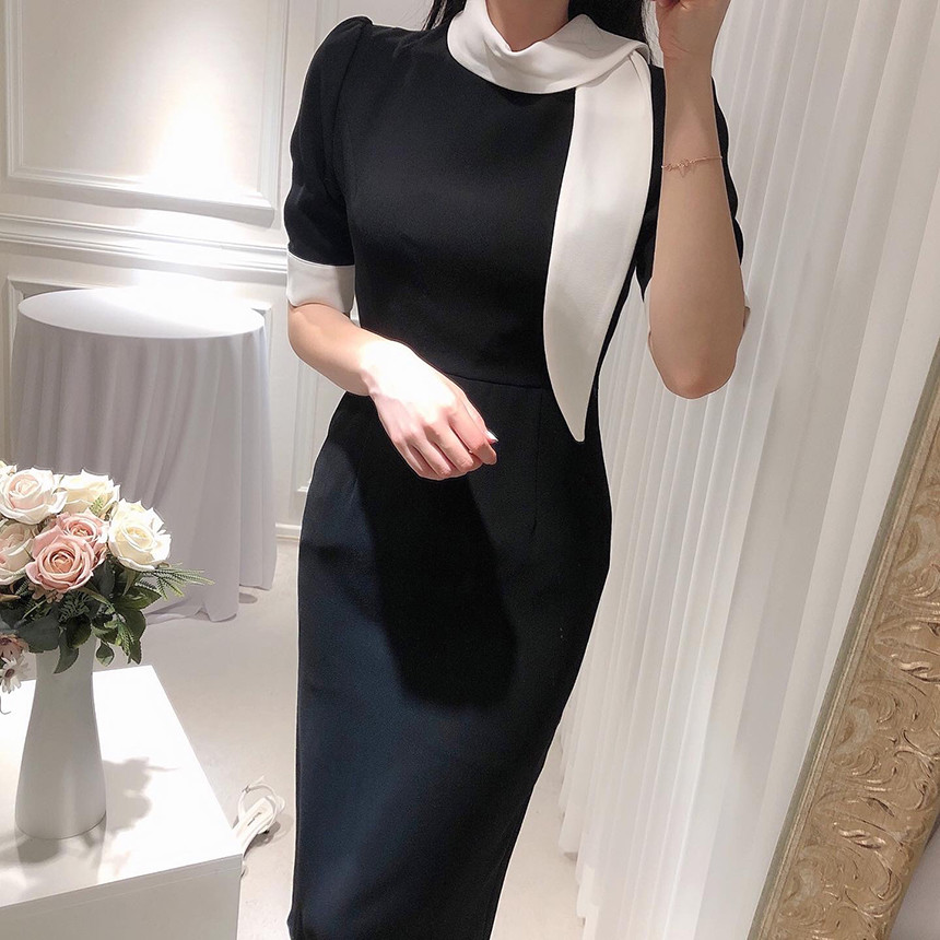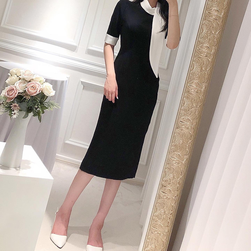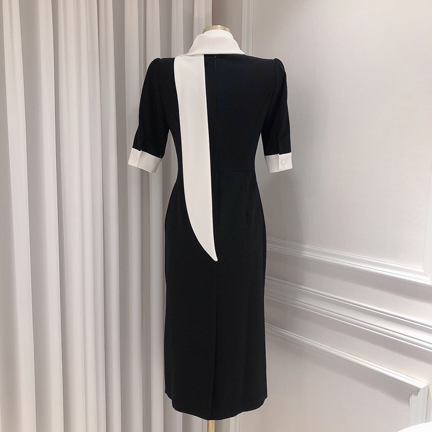 [원가이하 세일*당일출고] 스카프 리본 배색 원피스 (하객룩 돌잔치룩 상견례룩 정장원피스)