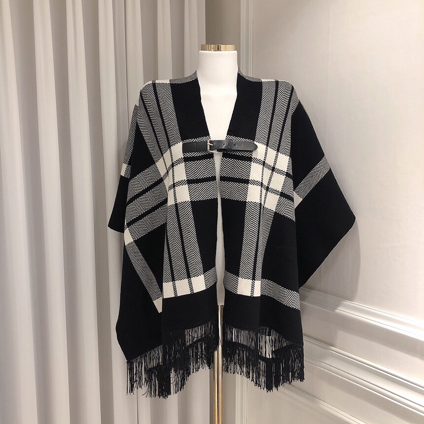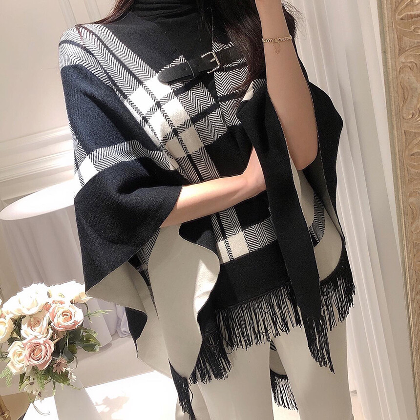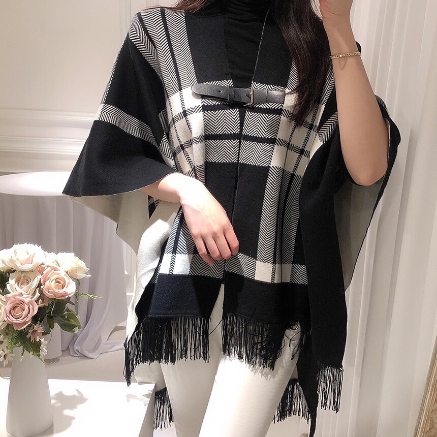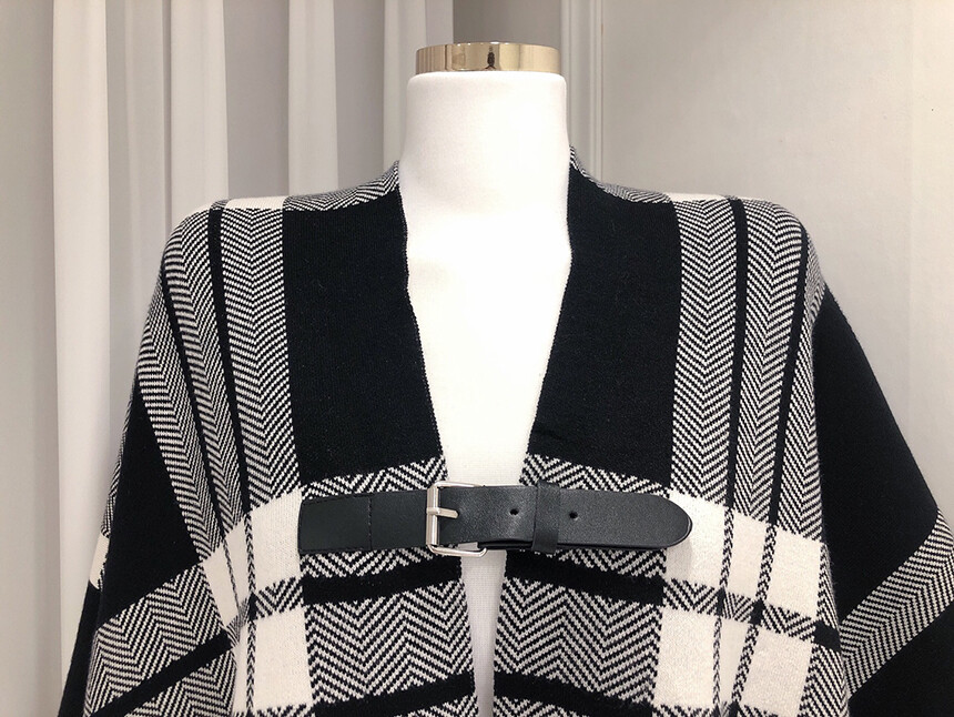 [수입] (High quality) 체크 패턴 울 숄 케이프 니트 망토