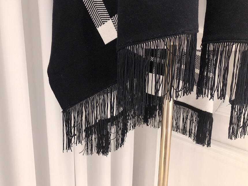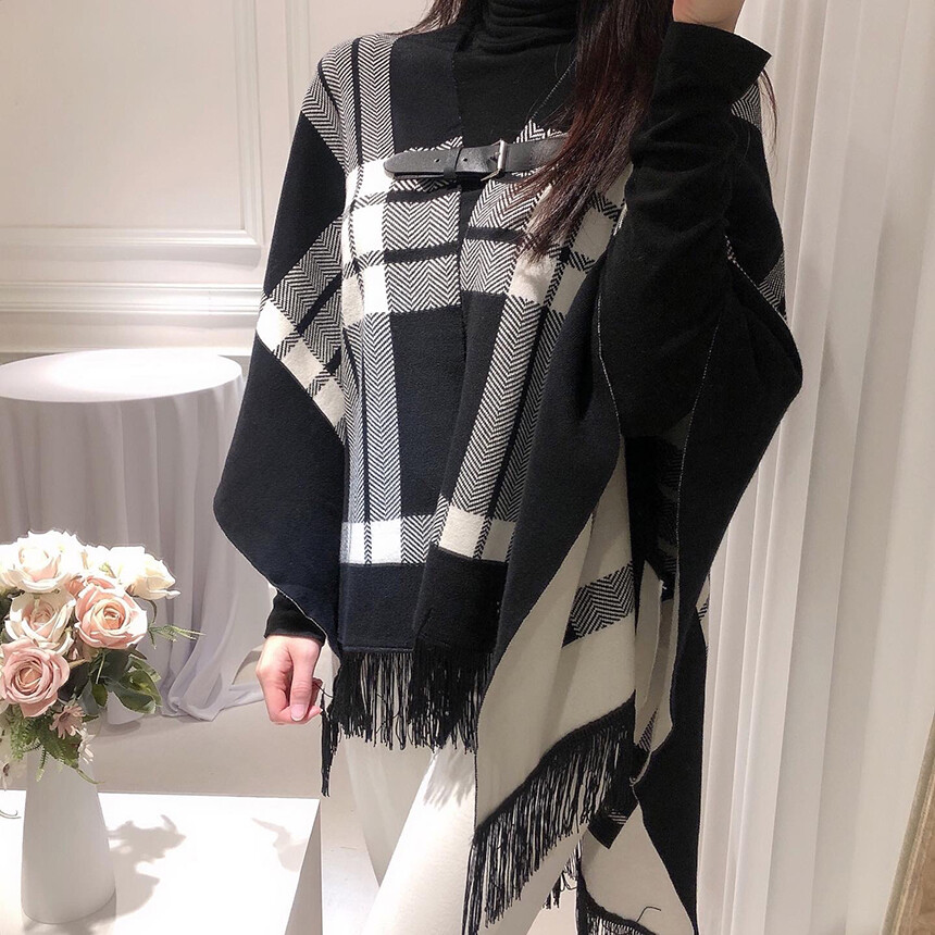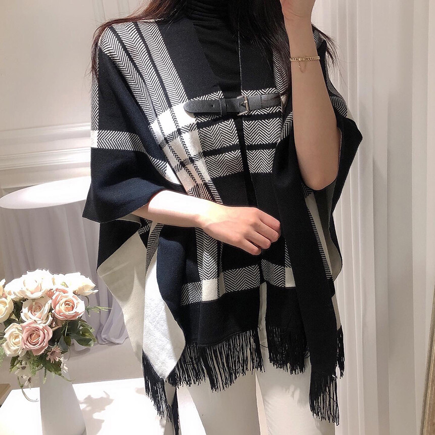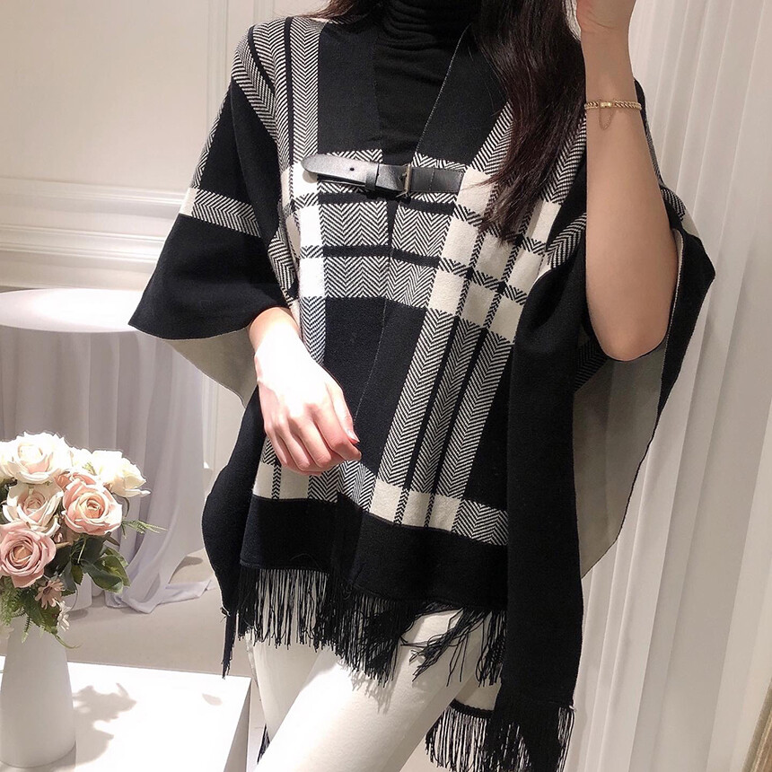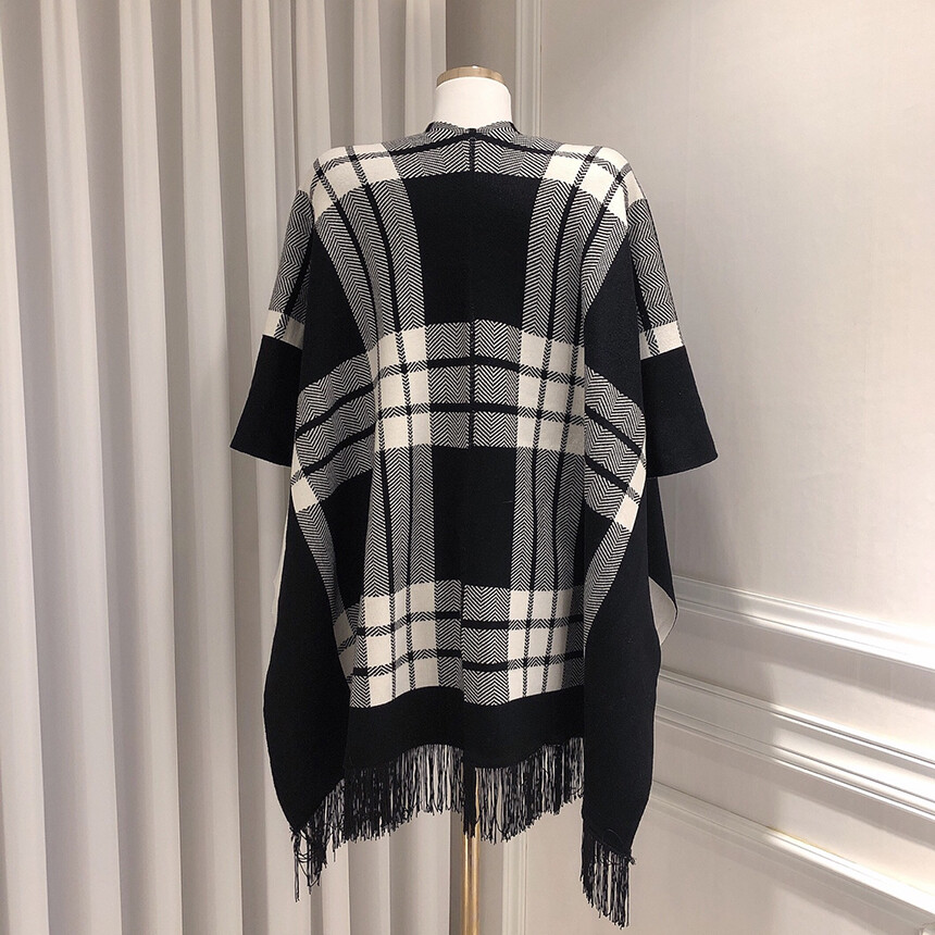 [수입] (High quality) 체크 패턴 울 숄 케이프 니트 망토
