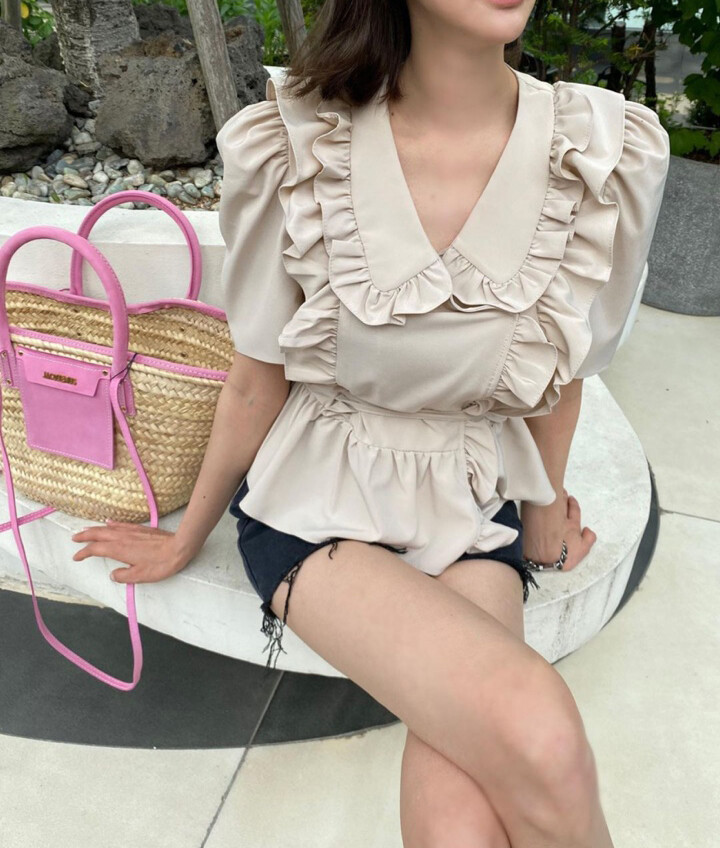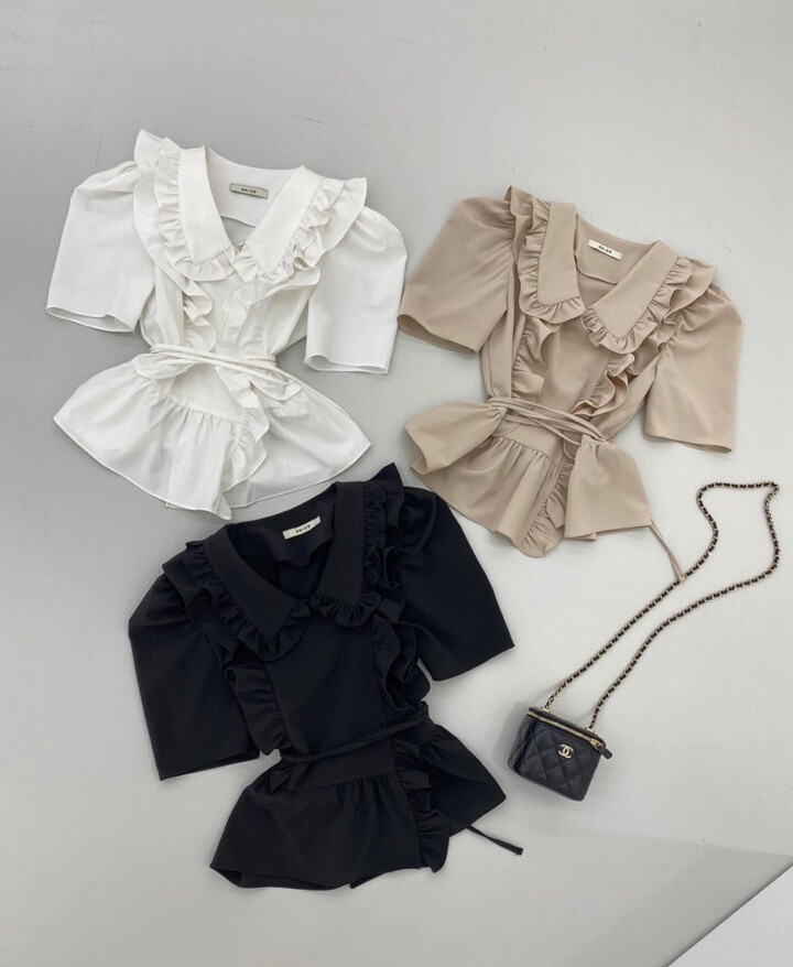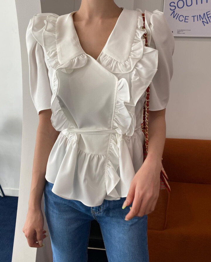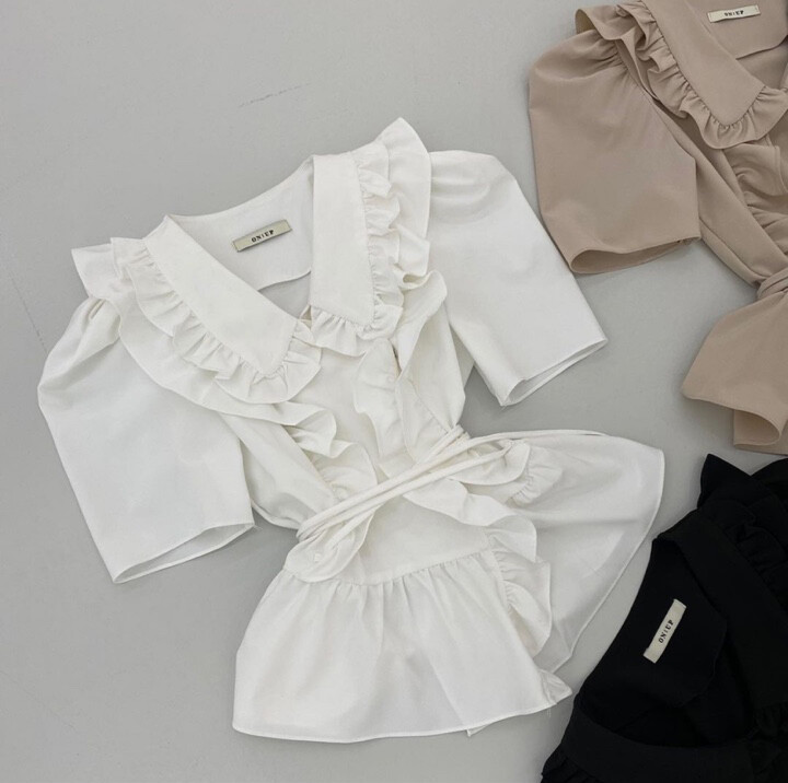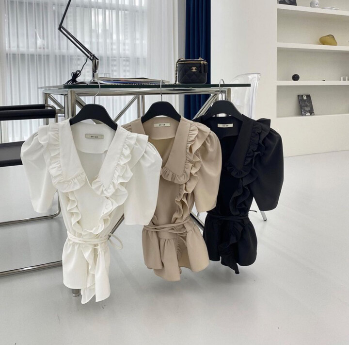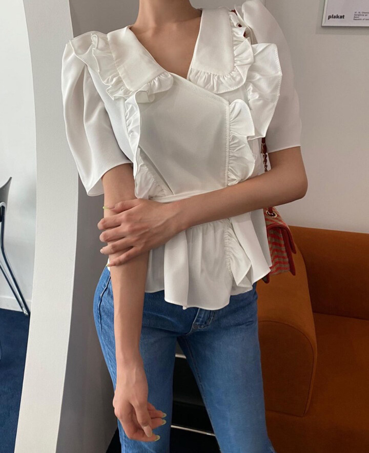 [원가이하 세일*당일출고] 카라 퍼프 소매 프릴 랩 블라우스