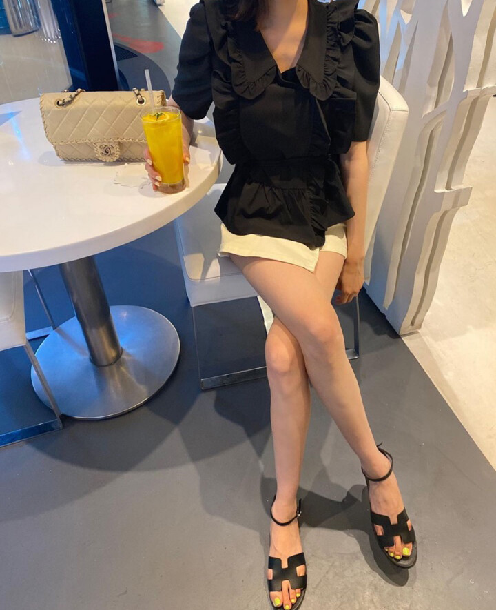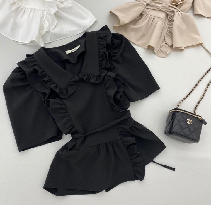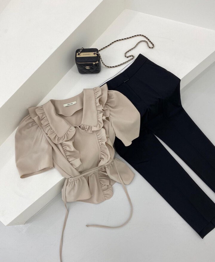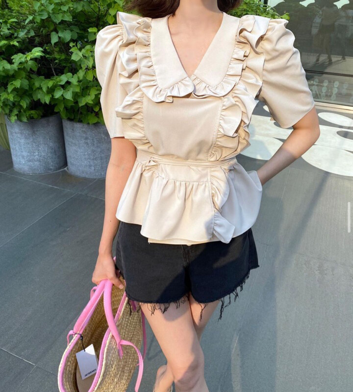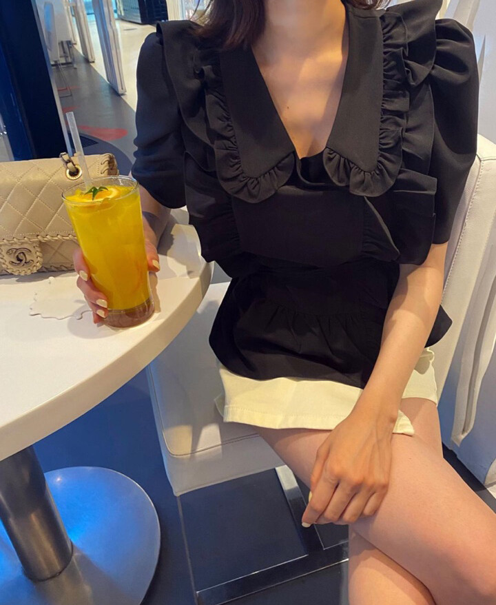 [원가이하 세일*당일출고] 카라 퍼프 소매 프릴 랩 블라우스